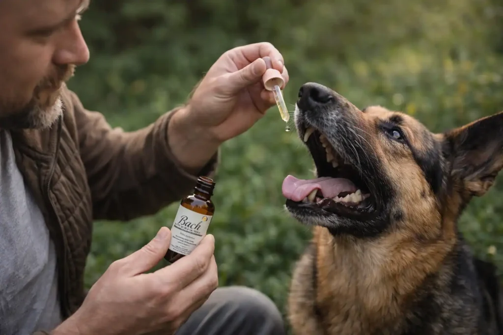 Mögliche Kombination: Holly (aggressive Reaktion) + Mimulus (konkrete Angst) + Rock Rose (wenn Panik im Spiel ist) + Larch (fehlendes Selbstvertrauen). Bei Hunden mit traumatischer Vorgeschichte ergänze Star of Bethlehem.