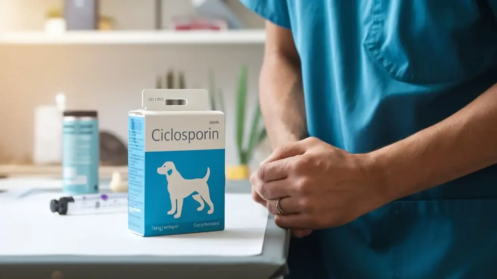 - Was ist Ciclosporin? Ciclosporin ist ein Medikament, das das Immunsystem des Hundes unterdrückt, indem es die Aktivierung von T-Lymphozyten hemmt. Es wird häufig bei Hauterkrankungen wie atopischer Dermatitis und Autoimmunstörungen eingesetzt.